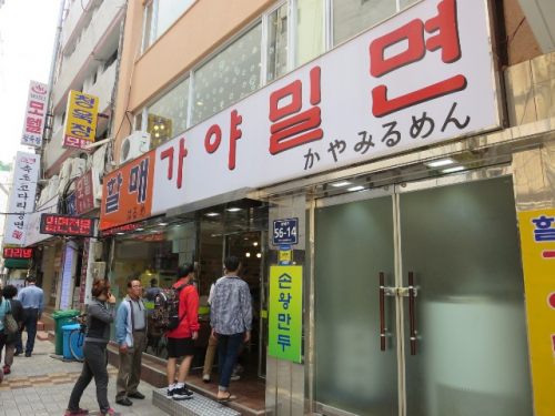 南浦洞にて、遅めの昼食とおやつ代わりに何か食べようと思い、そういえばミルミョンを食べていなかったので、ネットで検索してこちらを見つけました。