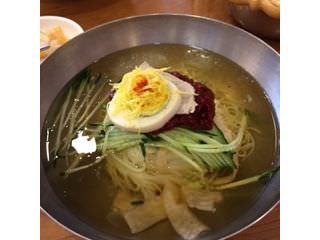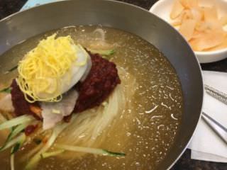 冷麺とは違ってやや太めの麺がスープに絡んで