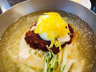 黄色い小麦麺に甘辛のスープがからんでのどを通り、水冷麺とは違ったツルッとした感覚が心地良いです。昼を過ぎおなかも空いていたので「大」を注文しましたが、ペロッと平らげました。