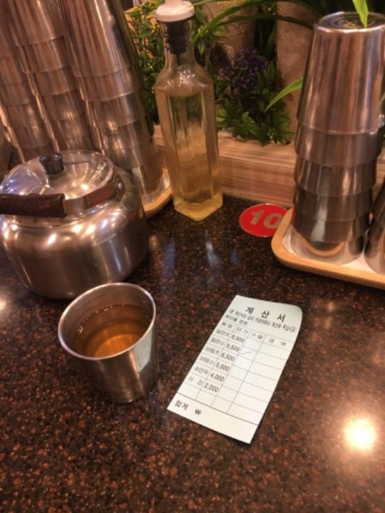 ミルミョン小のみ食べたので、伝票持ってレジで10500w出しましたが、一向にお釣りを渡さないアジュンマ。