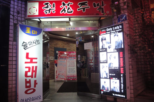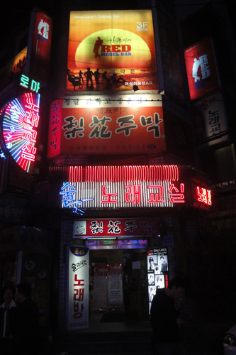 ホンデやカンナムみたいにすましていない、モーテルやら露店やらナイトやらが乱立したヨンドゥンポのあけっぴろげな熱気を楽しみながら、「RED MODEL BAR」にたどりつきました。