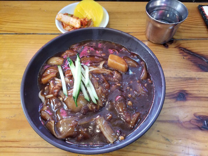 キムチチゲとジャージャー麺はやみつきです。熟成キムチは絶品です。キムチに関しては好みがありますからね。ホテルの朝食は食べずにお店でいつも食べていました。今回も朝、6:30にワクワクしながら店に行ったらシャッターが閉まっていました。呆然としてしまい、ホテルに戻りました。昼に再度チャレンジしたらシャッターが開いていました。階段を上っていつもの席に座ってみると店がリニューアルしていました。お店のおばちゃんに聞いたら24時間営業は終了したと聞かされました。残念です。店の中は椅子や床、壁紙もリニューアルされて綺麗でした。お土産は熟成キムチです。しっかりラップをしても帰国後も味わっています。 -