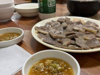ソルロンタン3、ヤンジスユッ(牛のゆで肉)1、マッコリ1、ソジュ1を注文。