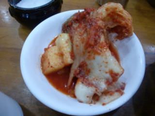 すぐに白菜キムチとカクテキの盛りがきます。