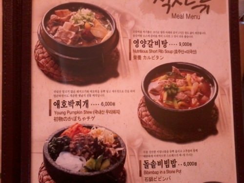 カルビタン 9,000ウォン、ユッケ石焼ビビンバ9,000ウォンです。