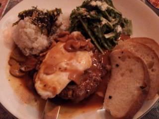 きのこたっぷりのちょっと甘めのソースとトッピングされたチーズを、ジューシーなハンバーグと一緒に頂くととっても「マシッタ~」です。