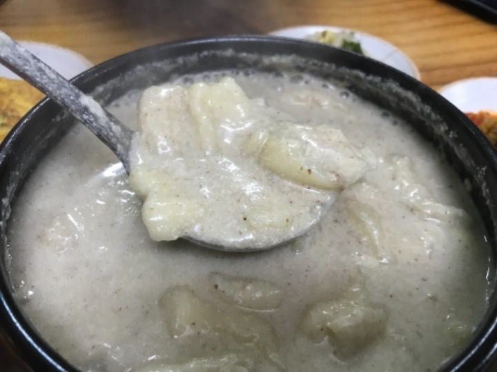 アツアツのゴマのスープは栄養たっぷりで、もちもちとしたすいとんとよく合って美味しかったです。