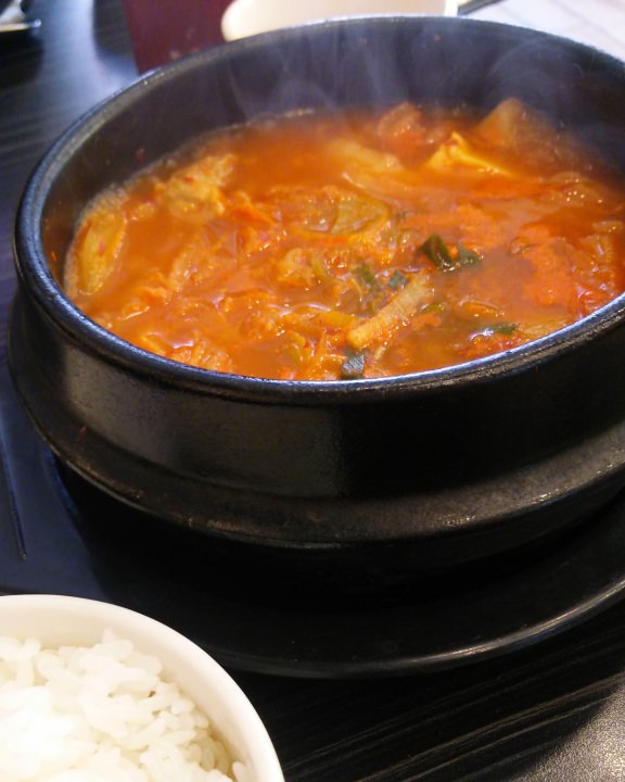 注文したのはグルドゥブちげ(牡蠣と豆腐の味噌汁)W7000 ごまのそばW7000です。私は豆腐は絹が好きですが、やはり木綿豆腐でした。なかにはあさり、牡蠣、アムール貝、野菜、なつめぐ等が入っていて、あまり辛くなく丁度食べごろでとても美味しく頂きました。帰りには近所のコーヒーショップでデカイカップに入ったコーヒーも飲み、とても幸せな気分で帰ることができました。本当に美味しかったです。ごちそうさまでした。