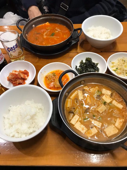 キムチチゲとテンジャンチゲを注文。
