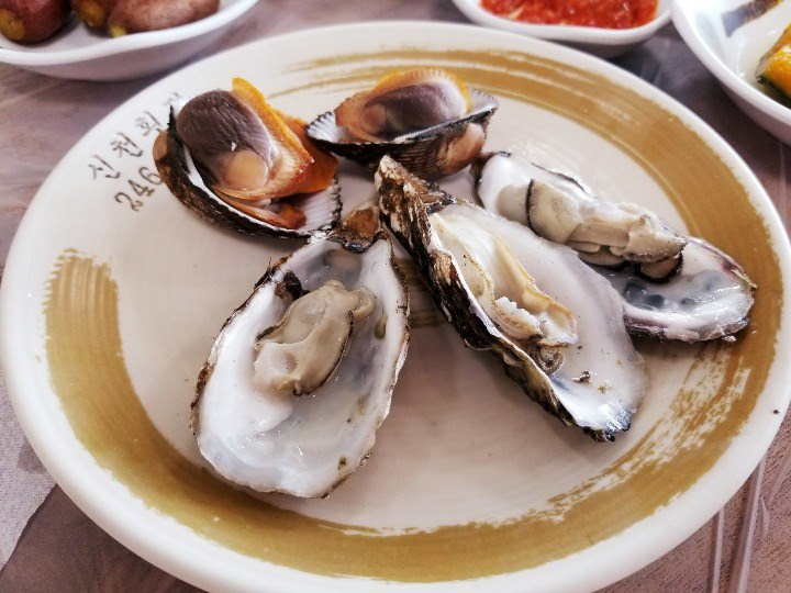 ・韓国の水産市場では1Fの市場で魚を選び、2Fの別の店で調理してもらうパターン