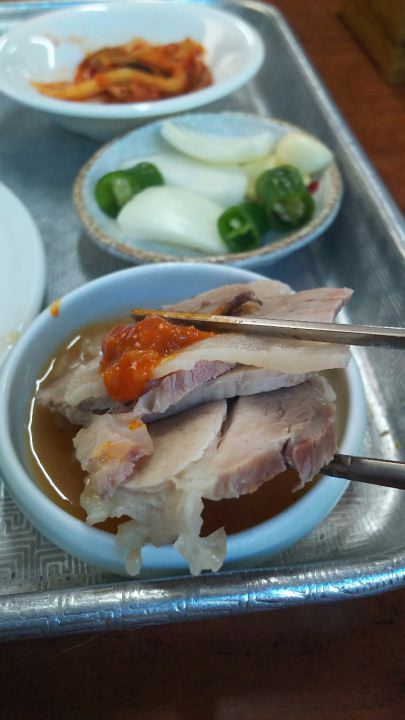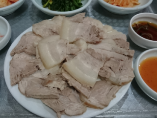 スユク+ククスの注文をしましたが、豚肉は柔らかく、臭みもなく美味しいのですが