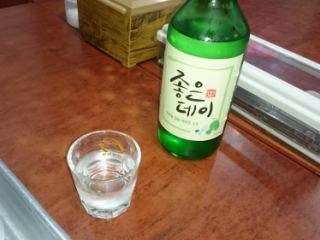 スユッを注文し、それをアテに焼酎を飲みます。1人飲みはこの空気感が
