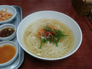 ククスは出汁は薄味で美味しいのですが、麺が柔らかく韓国ではこの位の茹で加減