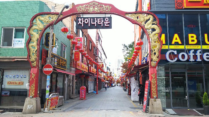 緩やかな上り坂で両側は中華料理店です。仁川の中華街に似ているな・・・