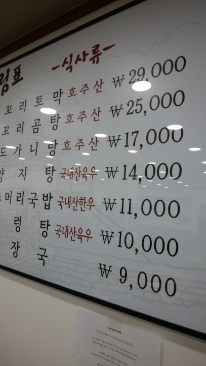 参鶏湯やサムギョプサルに比べると、国産牛はやっぱりお値段高めですね!