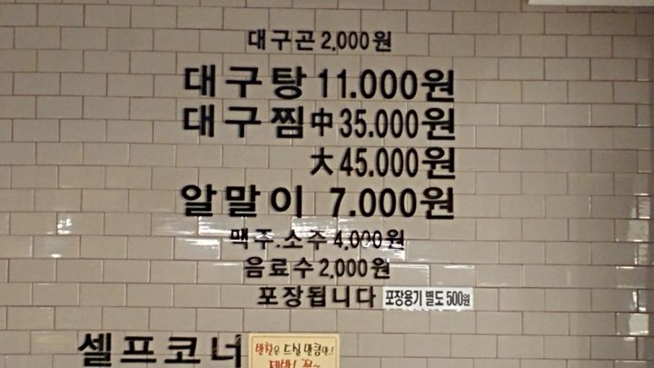偶然、『해운대 속 씨원한 대구탕』の看板を見かけ、