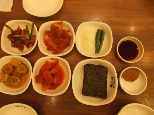他にバンチャンが5皿(キムチ、カクトゥギ、コンナムル、オデン、ヤンパ・青トウガラシ)と