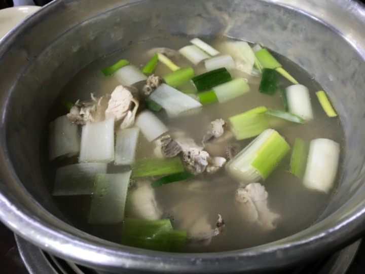 鶏はあらかじめ火が通ってました。ねぎとトック、じゃがいもが入っていました。