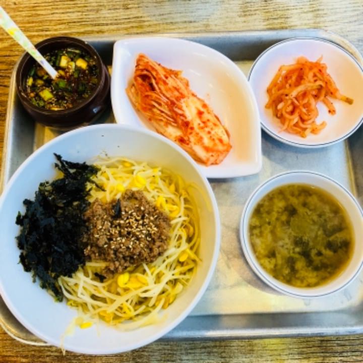 豆もやしの素朴なご飯だけど、ソコギ(牛肉)の方を選んで正解かも~ 美味しい