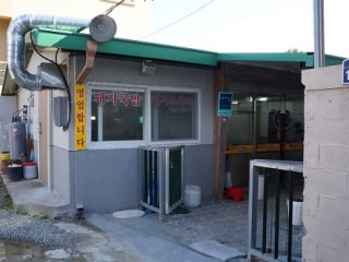 機張市場の観光ついでに「朝食はこの近所のテジックッパのお店を見つけたら入ろう」ということで、見つけたお店です。