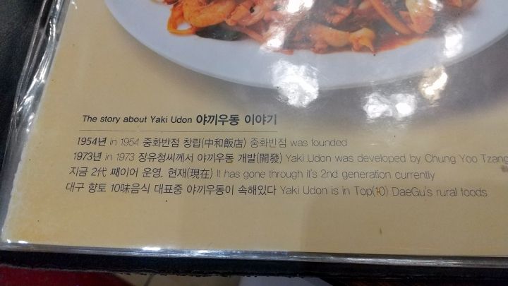利用時期:2023.05お気に入り追加大邱の名物料理「大邱10味」のひとつが、焼きうどん。大邱イチの繁華街・東城路の北・大邱駅寄りにある中和飯店(중화반점)が発祥の店です。中央路駅が最寄りです。店のある通りは日本風居酒屋が多く並びます。