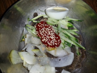 通常量の辛みそ全部を混ぜた冷麺を食べて