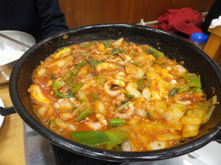 ナッチポックンとは簡単に言えばたこ鍋です。辛い薬味とたこと野菜の入った鍋です。