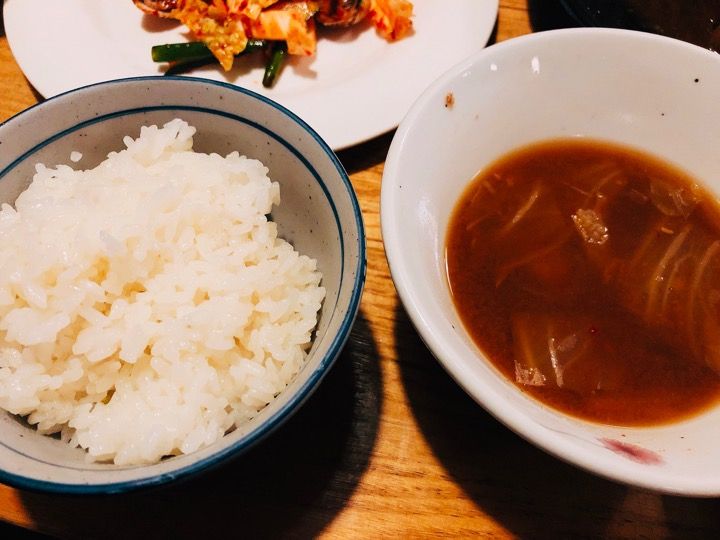 テンジャン汁と3種のナムル、キムチが一緒に出てきました。
