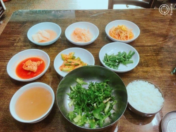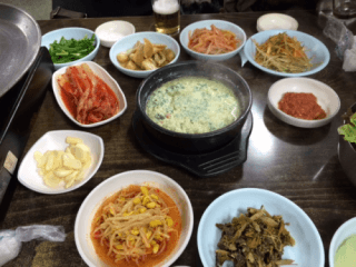 席につくと「テンジャンビビンバ?」と聞かれ、「ネー」と言うとすぐにおかず類が運ばれて来ました。