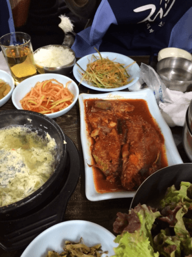 江南エリアにありますが、釜山にあるような食堂の雰囲気で、年の瀬ということもあり常連のご家族連れの方などで賑わっていました。