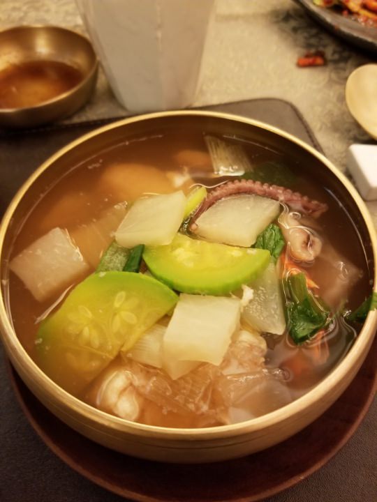 2018.07.14 石坡廊ランチに行ってきました。ソウル歴史博物館を見学の後、流しのタクシーを捕まえて15分ほどで到着。コネストで13時からの予約を事前にお願いしていたので、プリントアウトした紙を持っていって見せるだけで韓国語がわからない私たちでもすぐわかっていただけました。その場でメニューから選択し、一番高いコース(110000W、写真コース内容)を注文。おなかいっぱいになり、もう一つ下のランクのコースでもよかったかなという印象。帰りのタクシーも店員さん自ら道に立って一緒に止めていただき感謝でした。料理、店員さんのサービス、店の雰囲気すべてに満足できる内容で、韓国料理に対する印象が変わりました。時間とお金をかけて行ったかいがありました。