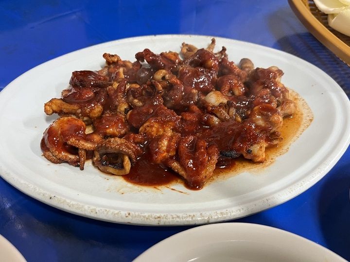 チュクミ(イイダコ)焼きを注文しました。先に出てきたパンチャン類もいいです。