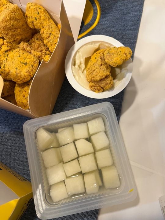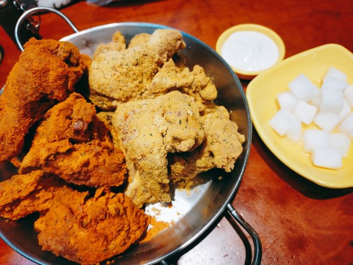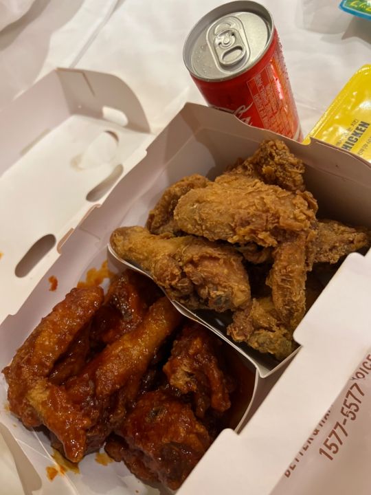 コーラがオマケについてくるのもありがたいし、チキンム(大根の酢漬けみたいなもの)でお口をさっぱりさせると無限にチキン食べられちゃいます笑。 -