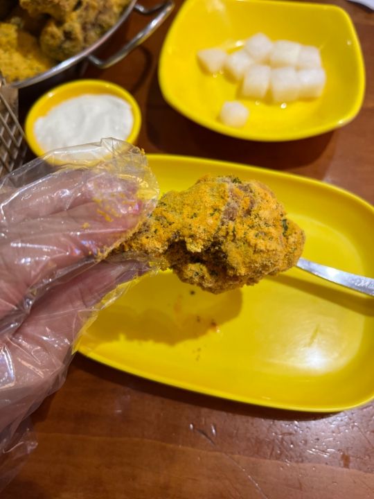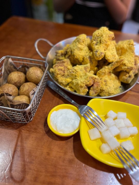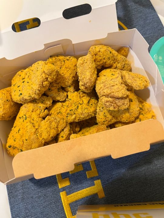本当プリンクルチキンは粉がどっさり掛かっててコンソメとチーズの良いところ取りな味がするので、中毒になってます笑。プリンプリンソースもサワークリームのようなヨーグルトとマヨっぽさもあってこれにチキンやチーズボールをディップして食べるのも最高です