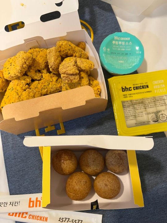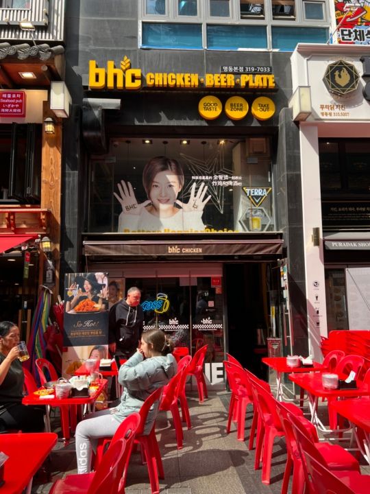利用日:2024.03.27お気に入り追加とても楽しみにしていたbhcチキン。お店に着くとなかなかの混雑でしたが、思っていたより早く2階に通されました。2階に着くと若い男性スタッフが、私たちを見るなり、「席ないけど!!」と韓国語で大きな独り言。でも、娘は、韓国語が分かるため、「2階に行く様に言われたから来た」と伝えると不機嫌なまま、なんとか席を用意してくれました。夕方5時半頃でしたが、注文しようとしたものは、既に売り切れのものが多く、なんとか注文したものの、待たされる事30分。私たちより遅く入って来た西洋人カップルは、早々とチキンを食べ終わり、お店を出て行くのを見ながら、ひたすら待ちました。あまりにも出てくるのが遅いので、声をかけると「あともう少し」と言われ、やっと出てきた時も不機嫌なまま声がけもなく、テーブルにドンと置いて行かれました。味は、よかったのだけが、救いでしたが、働いているスタッフに一切笑顔もなく、ただただ不機嫌な顔をして、接客している様子を見て、もうリピはないと思いました。