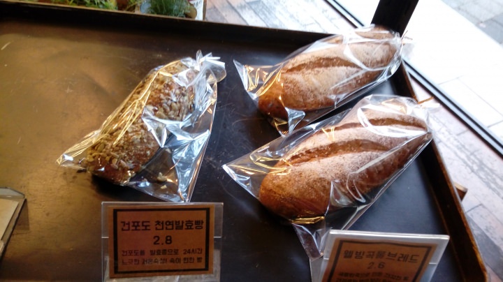ライ麦パン(1200ウォン)と、黒っぽい「穀物ブレッド(2600ウォン)」を見て「何だか安いような…」と手に取ってみると、えらく軽くて柔らかいような??重厚質感なイメージの商品ですが、帰宅後に改めて過去のクチコミを読むと、そういえば「ふわふわのパンが美味しい」とあります。結局、この2つを買いましたが、まあ、これはこれで悪くありません。