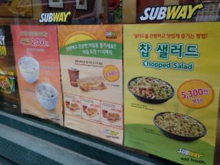 さて、このサブウェイから徒歩3分圏にあるマクドナルドやバーガーキング同様、サブウェイにも「朝メニュー」が存在します。午前11時までで、サンド+コーヒーのセットが4種類、各3500ウォンです。