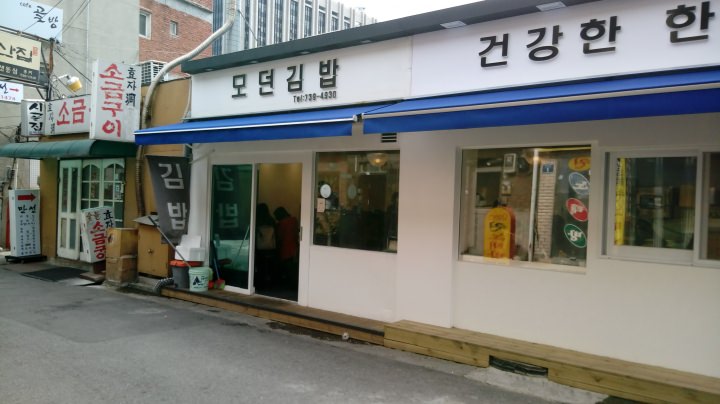 今日の昼、景福宮駅3番出口近くの「モダンキムパッ」を久々に訪ねたら、近所の会社員風の若い女性グループ、韓服着用の中国人旅行者など、多様な客で賑わっていました。