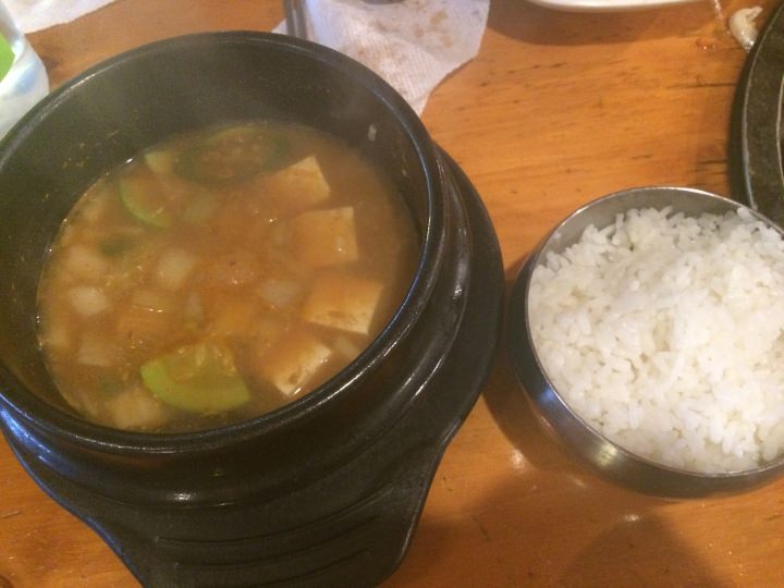 お皿に盛られて来た時は、少ないっと思いましたが、いざ食べてみるとなかなかの量!2人で来ましたが3品でちょうどお腹いっぱいになりました。驚いたのが、ひとつひとつの歯応えと味がとてもしっかりしていて、肉質が良かったように感じました。最後はテンジャンチゲ(たったの1,000ウォン)で締めて美味しくいただきました^^
