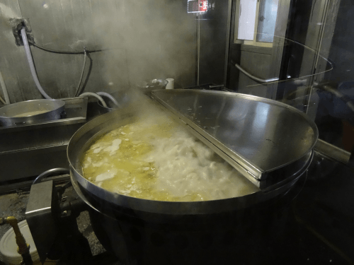 店外には大きな釜がいくつもある部屋があり、グツグツと煮込まれている様子を見るのは面白かったです。