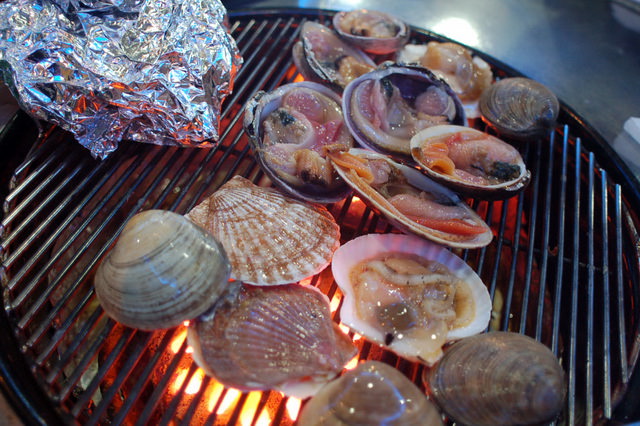付きっきりで焼いてくれました。両手にトングを持って器用に貝を開けたりひっくり返したり、流石です(笑)。おかげで上手に焼け、助かりました~。