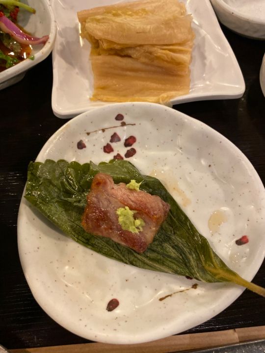 一番は大根サンム 大根のピクルスという感じのものですが、それでまいて食べるわさびのせが一番おいししかったのは・・年齢のせいでしょうか