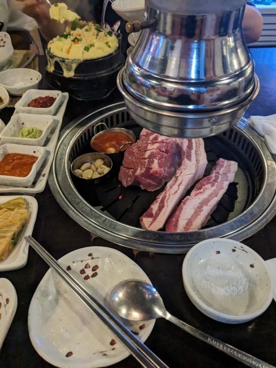 前回、モクサルに感動したんですが、今回はパサパサで、サムギョプサルを2人前にすれば良かったと後悔。。焼いてくれる人によるのかもしれませんが、もういいのになぁと思うくらい焼いてたからかも。