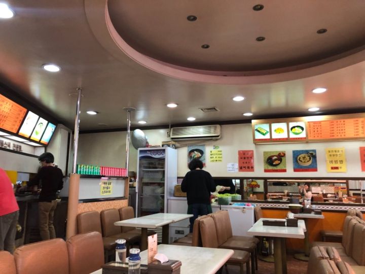 ザ・地元の食堂という感じでおしゃれ感や今時感はありませんが、不思議と落ち着く空間です。たまたまかもしれませんが、聞こえてくる言葉は韓国語と中国語のみでした。お水や取り皿はセルフのシステムです(特に案内はありません)。