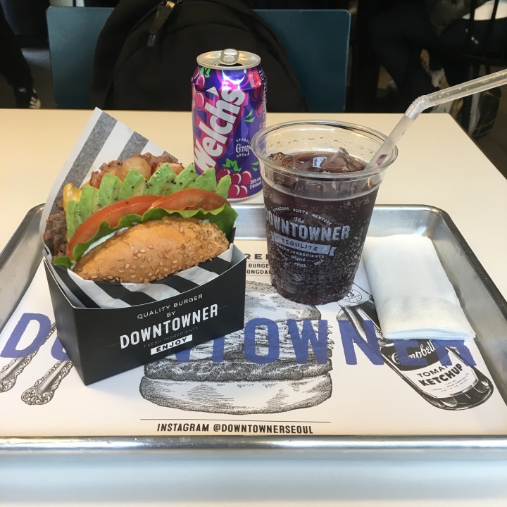 私はアボカドバーガー(9300W)とウェルチグレープ(2500W)を注文しました。アボカドバーガーを食べている方が多かったです。