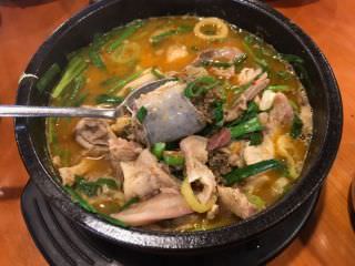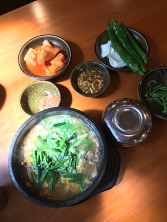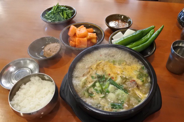 お昼のランチタイムを外してと思い、11時半前に行ったのですが、既に列が出来ていて名前を記入して皆さん待っていました。名前を書かず12時過ぎに再度訪問すると、丁度切れ間だったのか運良くすぐ座れました。店員さんもキビキビしていて、1人だったのですが、4人席に案内されました。待つこと数分で出揃い、熱々でグツグツいってます。スンデはクセもなくて食べやすく、スンデ単品で沢山食べたい気分でした。