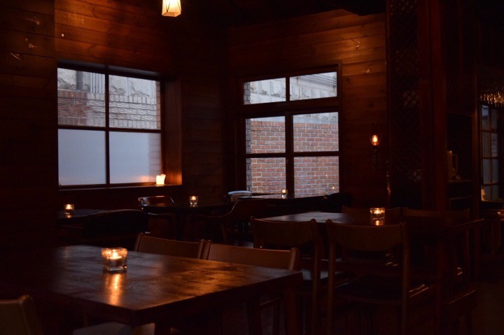 小さなお店で昼はカフェ?夕方に行くとワインバーでした。私の記憶ではソフトドリンクなし。ワインとビールくらいしかなかったような…食事もおつまみ程度。キャンドルが揺れ照明暗めとてもおしゃれな空間でドラマの世界に浸れます。