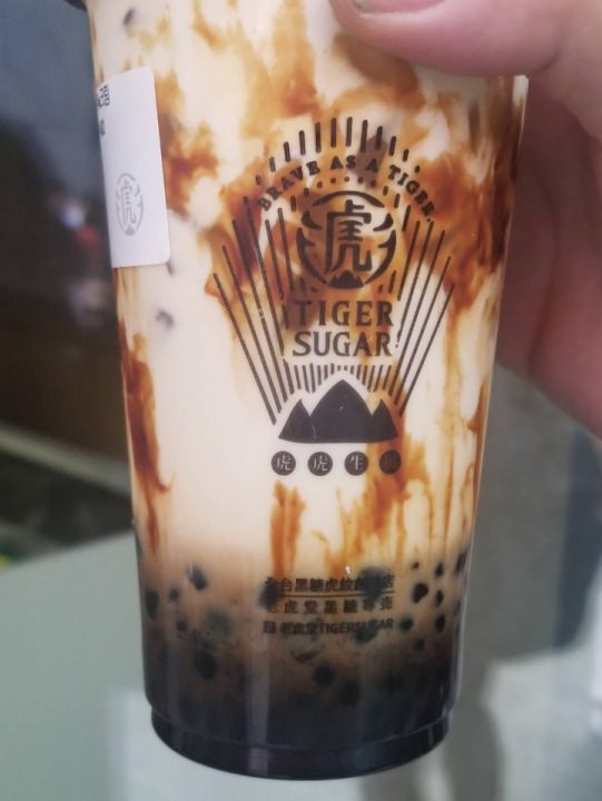 私もゴンチャとかでタピオカミルクティは飲んだことありました。ここのは黒糖タピオカにミルクだけでした。ほかのメニューを見てないので、ミルクティもあるのかもしれないですが、皆が頼んでるのは、黒糖タピオカミルクでした。