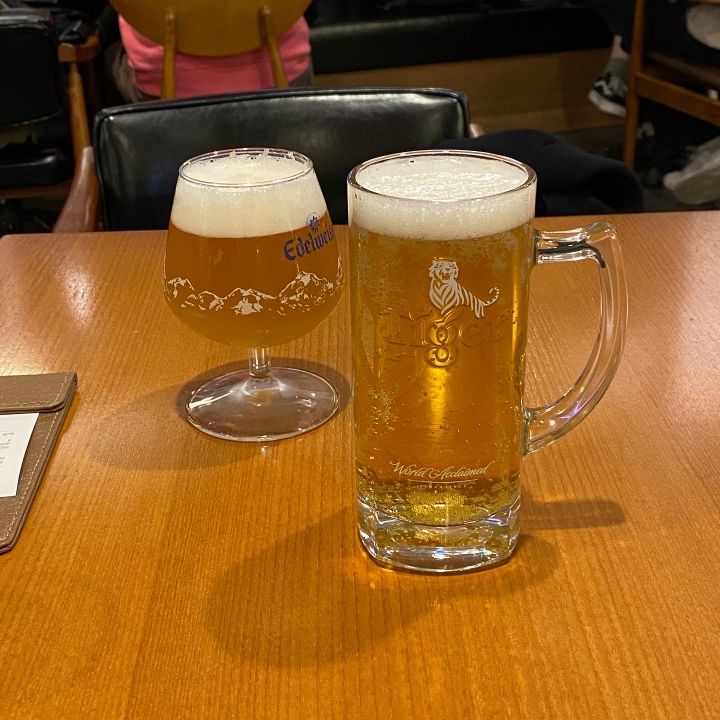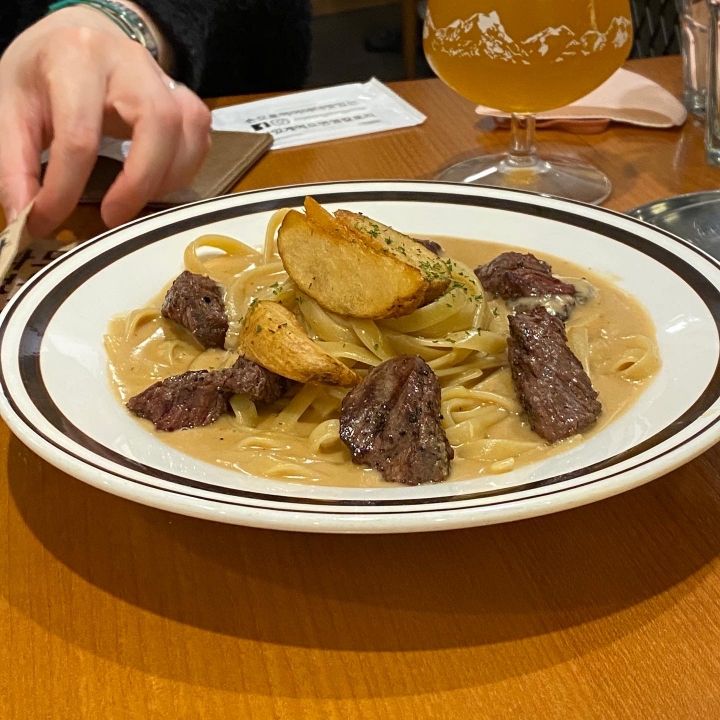注文したのは、チーズピザとメキシカン(辛めのピザ)のハーフアンドハーフと、ビーフステーキクリームパスタと、タイガービール(お店のオリジナルのピザ)です。パスタは、グレービーソースのような味がして、日本では味わえないような味でとても美味しかったです!!感動しました。