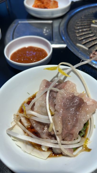 チャドルバギの甘酸っぱいタレがさっぱりしてて美味しくて、次回はチャドルバギ2人前にします。サムギョプサル焼くのはセルフだし面倒だし